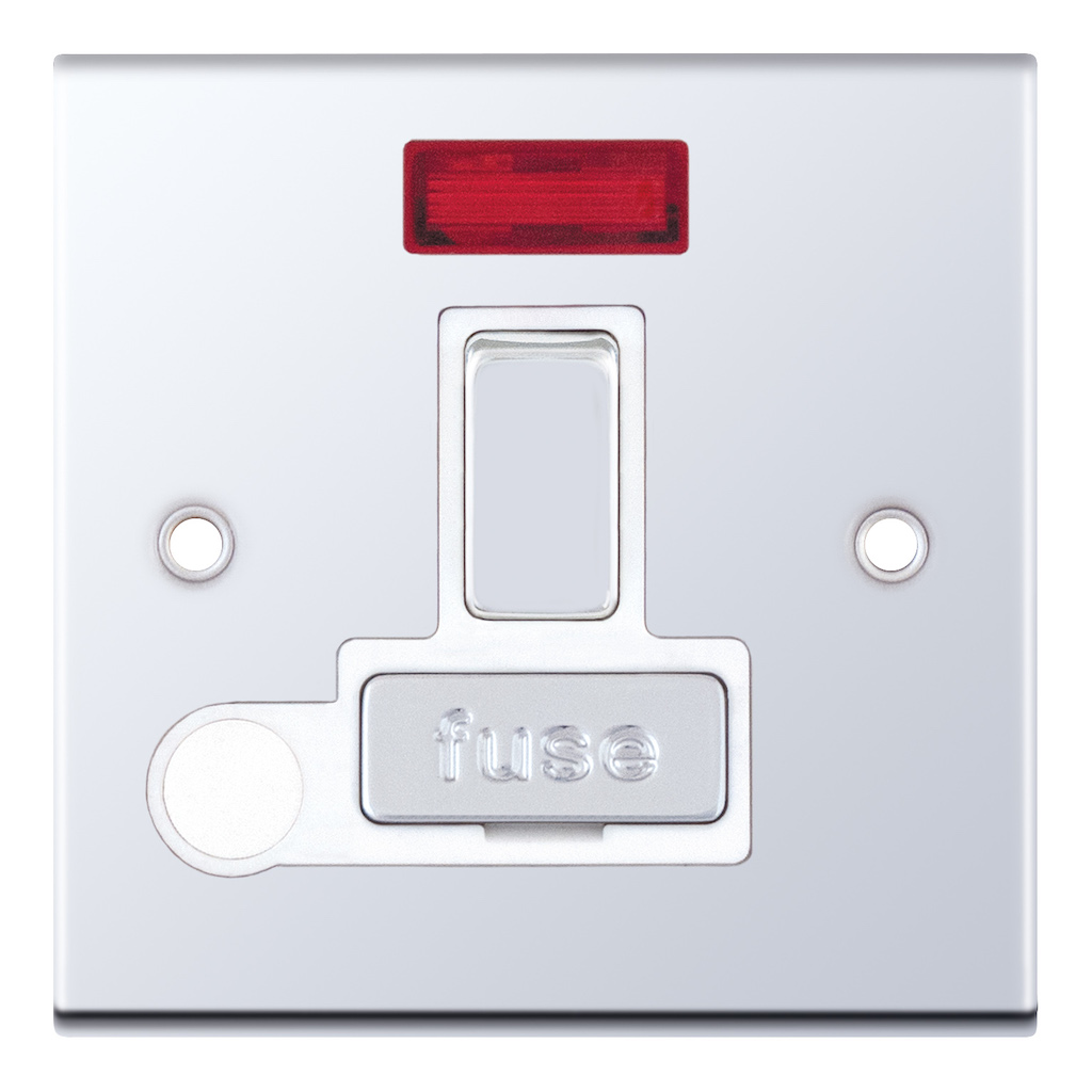 • Colour: Polished chrome with matching metal rocker & white insert – Marked “FUSED”