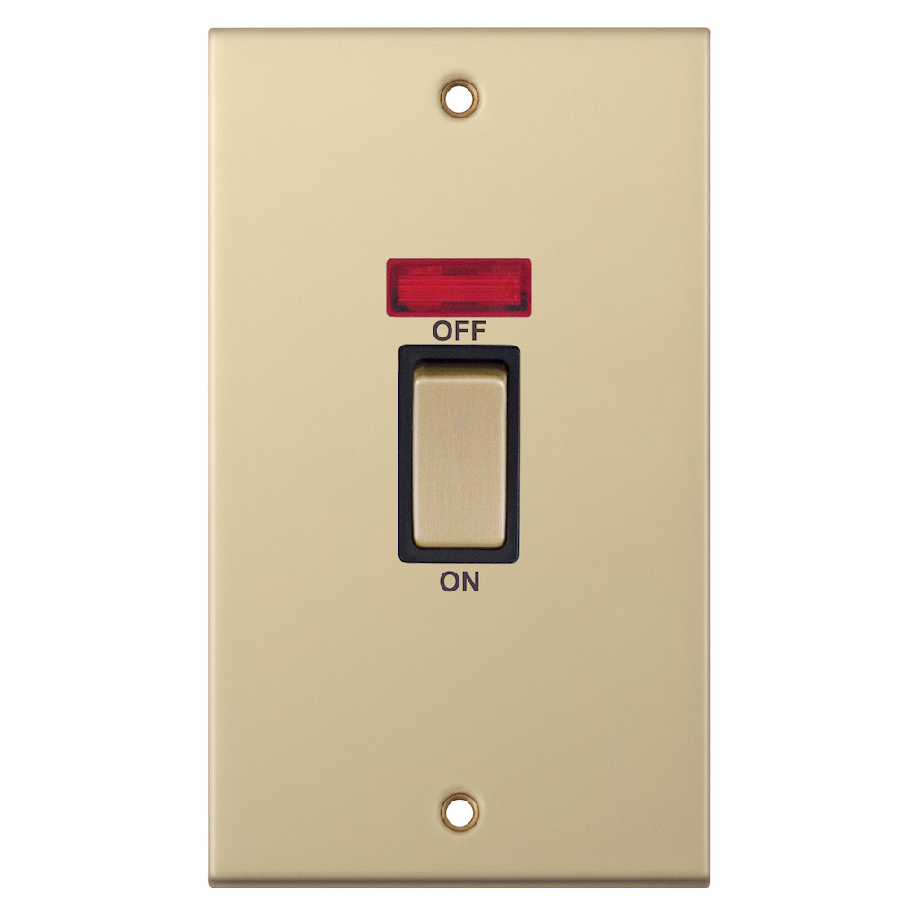• Colour: Satin brass with matching metal rocker & black insert – Marked “OFF / ON”