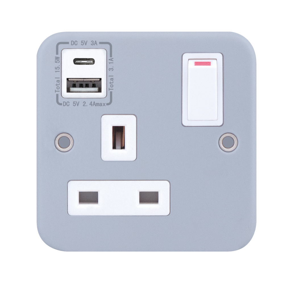 LG9097MB-USB 1 Gang 13 Amp Socket with 1 x USB Type C & 1 x USB Type A Port (3.1A)